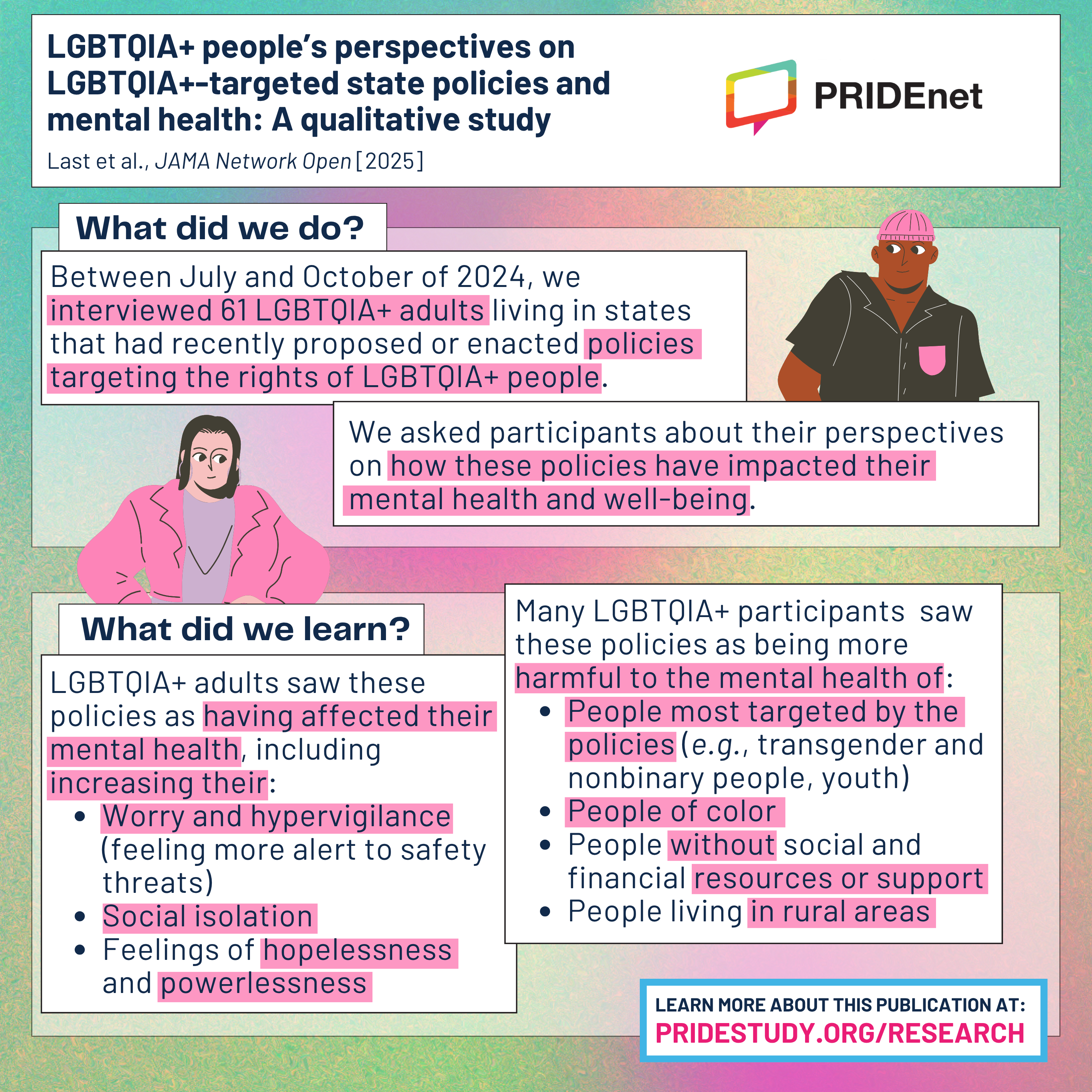 If you’re interested in conducting research related to LGBTQ+ health, please learn more about collaborating with The PRIDE Study at http://pridestudy.org/collaborate.
